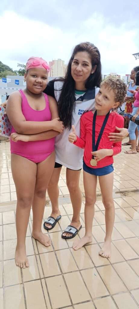 A professora Alessandra de natação muito dedica, responsável , carinhosa, atenciosa com cada aluno , e sempre falando o nome dos movimentos com isso as crianças sabia cada movimento e técnicas , diz mãe do aluno Marcos Lázaro .