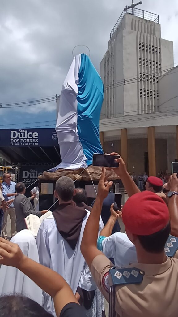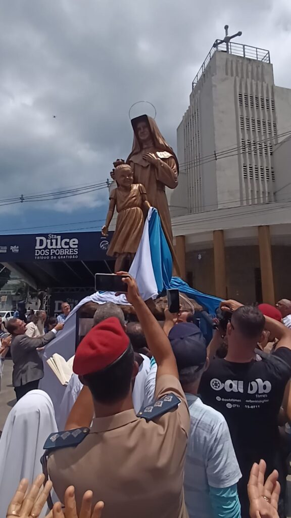 Homenagem do Governo do Estado, através da Secretaria de Turismo (Setur), o monumento em bronze tem cinco metros de altura e assinatura do artista plástico Félix Sampaio, que em sua obra retrata Santa Dulce dos Pobres em ação, acolhendo uma criança e olhando para o futuro.
