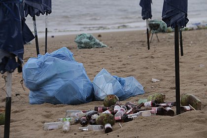 Nas redes sociais de organizações sem fins lucrativos (ONGs) com atuação ambiental em Porto Seguro, circulam vídeos dos lixos deixados nas praias do município após o Réveillon. Nas imagens, resíduos de plástico e vidro ocupam mais da metade da área verde antes da faixa de areia de uma das praias da Orla Norte.