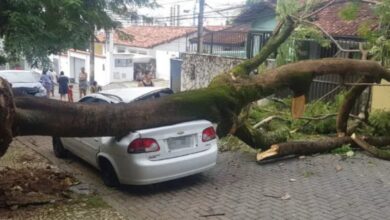 O incidente aconteceu no final da manhã desta terça-feira (12) Uma árvore de grande porte caiu e esmagou o porta-mala…