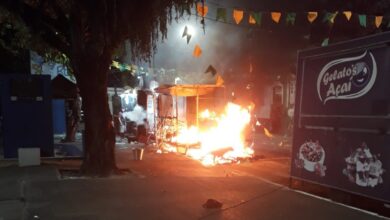 Um botijão de gás pegou fogo e destruiu um Food Truck – carros equipados para comercializar comidas e bebidas –…